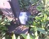 This cache was amazing. It was in the parking lot of a golf course. Well, the final cache was, any way. The first part of it led us to a big electrical box outside of a grocery store. There, there were coordinates posted which led us to the second part which was the golf course parking lot. Tal, for whatever reason, decided to flip open the cover on the electrical box. Inside, she saw the geocaching logo on a small bottle.